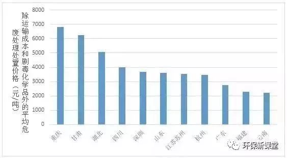 圖1.不完全統(tǒng)計各地危廢處理處置平均指導價