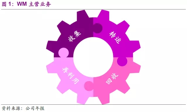 美國廢物管理公司 (Waste Management, Inc.,以下簡(jiǎn)稱WM)成立于1968年,經(jīng)過多年的成長(zhǎng)和發(fā)展,從數(shù)個(gè)小型垃圾收集站逐步發(fā)展為全球固廢的絕對(duì)龍頭。公司在目前在美國和加拿大地區(qū)為市政、商業(yè)、工業(yè)及居民客戶提供廢品管理服務(wù),包括收集、轉(zhuǎn)運(yùn)、再利用、資源回收服務(wù)。