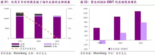 公司在1998年底合并后便堅(jiān)決的采用了收益導(dǎo)向策略來優(yōu)化公司業(yè)務(wù)結(jié)構(gòu),首當(dāng)其沖調(diào)整的便是海外業(yè)務(wù)。北美外業(yè)務(wù)是助力公司成為全球最大固廢公司的核心驅(qū)動(dòng)之一,為公司帶來了可觀的營(yíng)業(yè)收入。但是隨著競(jìng)爭(zhēng)的逐步加大,北美外業(yè)務(wù)的營(yíng)業(yè)利潤(rùn)逐步下滑。公司僅用2年時(shí)間便基本完成了海外業(yè)務(wù)的剝離,這一切還是發(fā)生在美國和加拿大營(yíng)業(yè)收入同步下滑的基礎(chǔ)上,可見公司的決心。更值得稱道的是,2年間公司營(yíng)業(yè)利潤(rùn)實(shí)現(xiàn)了明顯增長(zhǎng),股價(jià)也隨之走高,充分體現(xiàn)出了收益導(dǎo)向策略的成功之處。