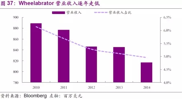 對(duì)Wheelabrator業(yè)務(wù)的剝離則屬意料之外,情理之中。Wheelabrator作為公司綠色能源業(yè)務(wù)的核心子公司,長(zhǎng)期為公司提供穩(wěn)定的收益和現(xiàn)金流。截止2014年,Wheelabrator共有15個(gè)垃圾焚燒發(fā)電廠和4個(gè)獨(dú)立電廠,年均垃圾焚燒量達(dá)740萬噸,年均發(fā)電能力達(dá)768兆瓦,在全美垃圾發(fā)電行業(yè)處領(lǐng)先水平。然而隨著垃圾發(fā)電行業(yè)的增速放緩,Wheelabrator自2010年起營(yíng)業(yè)收入持續(xù)走低,營(yíng)業(yè)收入占比也由巔峰時(shí)的6.1%下滑至5.0%。WM為了獲得更充裕的自由現(xiàn)金流,可以對(duì)公司的核心固體廢棄物業(yè)務(wù)進(jìn)行進(jìn)一步的投資布局,在2014年以13億美元的交易對(duì)價(jià)將Wheelabrator進(jìn)行了出售剝離。