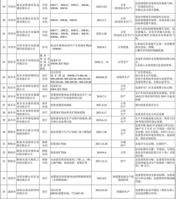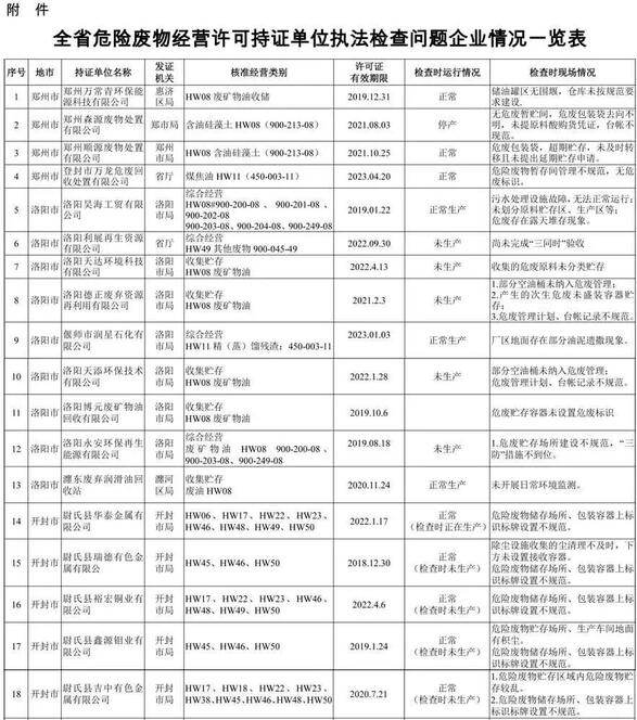 77家企業(yè)被通報(bào)!河南危險(xiǎn)廢物經(jīng)營(yíng)許可持證單位檢查結(jié)果出爐