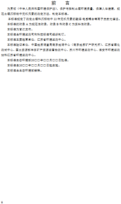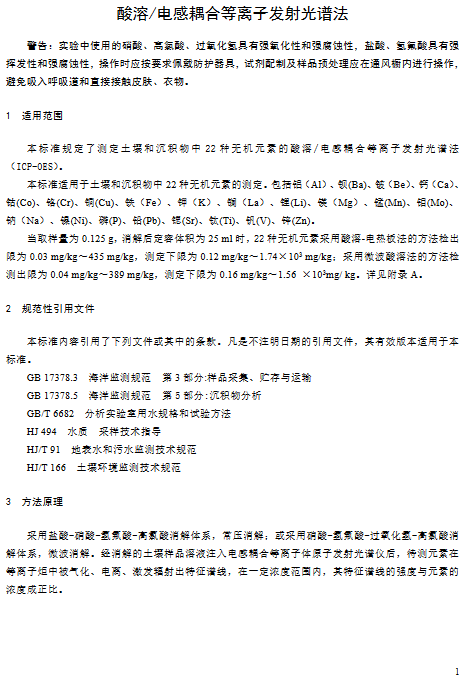 土壤和沉積物 22種無機元素的測定 酸溶/電感耦合等離子發(fā)射光譜法(征求意見稿)