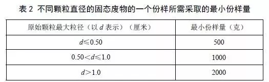 b)依據(jù)固態(tài)廢物的原始顆粒最大粒徑,不小于表2中規(guī)定的質(zhì)量。
