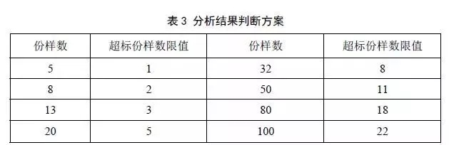 7.1在對(duì)固體廢物樣品進(jìn)行檢測后,如果檢測結(jié)果超過GB5085.1、GB5085.3、GB5085.4、GB5085.5和GB5085.6中相應(yīng)標(biāo)準(zhǔn)限值的份樣數(shù)大于或者等于表3中的超標(biāo)份樣數(shù)限值,即可判定該固體廢物具有該種危險(xiǎn)特性。