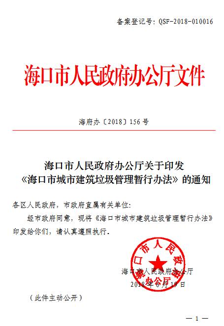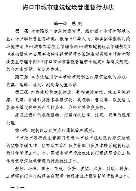 日前???/a>市人民政府辦公廳印發(fā)《海口市城市建筑垃圾管理暫行辦法》(以下簡稱《辦法》),明確要求對建筑垃圾處置實行特許經營管理,企業(yè)或個人如果違規(guī)處置將受處罰?!掇k法》從今年9月1日起施行,有效期兩年。