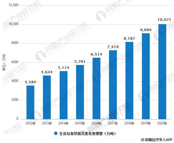 2012-2020年生活垃圾焚燒無(wú)害化處理量預(yù)測(cè)(萬(wàn)噸)