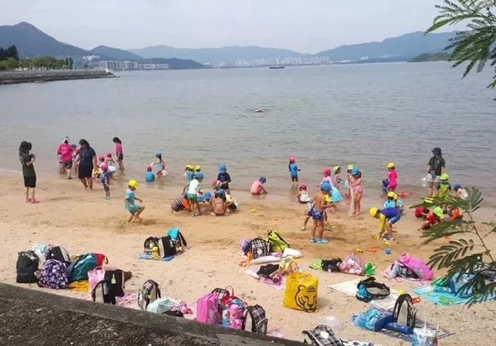 近日,位于香港紅磡的日本人幼兒園“こひつじ幼稚園”的孩子們?cè)诶蠋煄ьI(lǐng)下,到馬鞍山烏溪沙沙灘游玩。