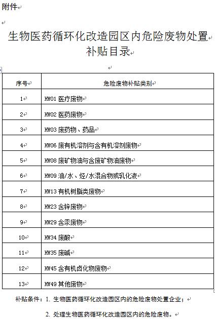 附件:生物醫(yī)藥循環(huán)化改造園區(qū)內(nèi)危險廢物處置補貼目錄