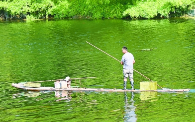 在廣西興安縣界首鎮(zhèn),村民劃著竹筏從清澈的湘江上經(jīng)過,這是廣西實(shí)施“清潔鄉(xiāng)村”大行動的重要成果之一。新華社發(fā)