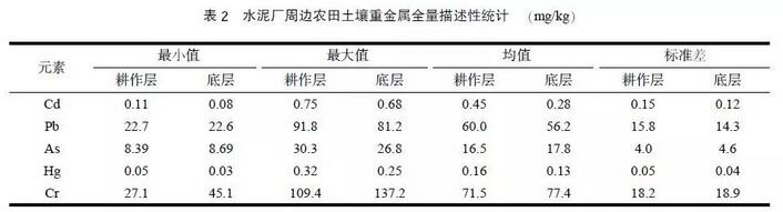 從統(tǒng)計結果來看,水泥廠周邊農(nóng)田土壤重金屬Cd 污染最為嚴重,且耕作層Cd 全量和有效態(tài)含量均高于底層土壤含量,表明該區(qū)域Cd來源為外源污染。