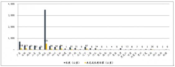 部分黑臭水體治理水體長度