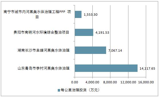 部分黑臭水體每公里治理投資