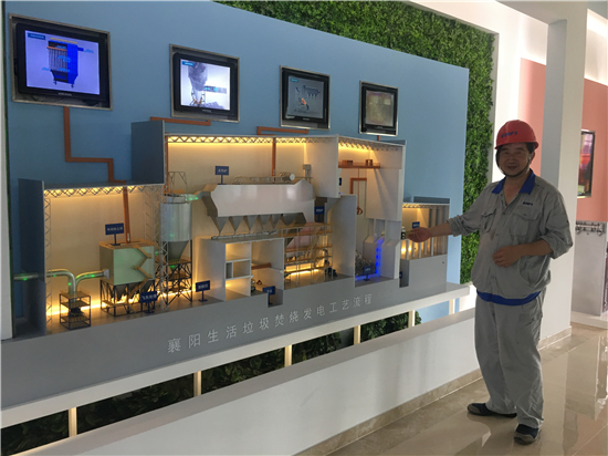 ▲工程人員介紹襄陽生活垃圾焚燒發(fā)電工藝流程。圖/張兵