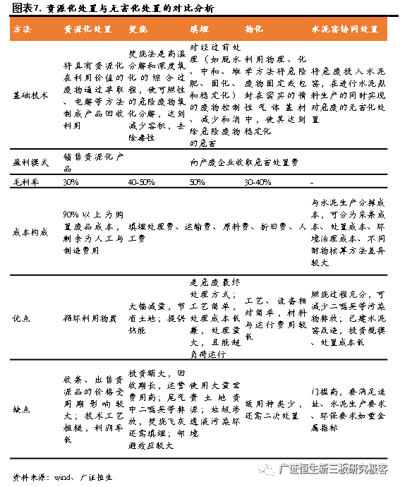 由于無(wú)害化的產(chǎn)能短缺,危廢無(wú)害化處理的盈利能力比資源化好,一般資源化的毛利率在20%-30%之間,而無(wú)害化的毛利率可以高達(dá)50%以上。