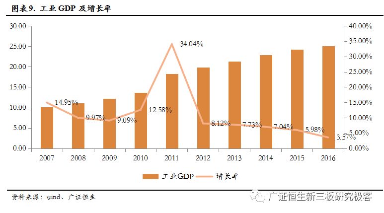 危廢主要是工業(yè)生產(chǎn)活動(dòng)中產(chǎn)生,隨著我國(guó)改革開發(fā)以來(lái)的經(jīng)濟(jì)發(fā)展,危廢的產(chǎn)生量也逐年增加,根據(jù)生態(tài)環(huán)境部的《環(huán)境統(tǒng)計(jì)年報(bào)》,2016年我國(guó)危廢產(chǎn)生量為5347萬(wàn)噸,相比2011年復(fù)合增長(zhǎng)率為9.28%,我國(guó)同期產(chǎn)值的增長(zhǎng)率則相對(duì)較小。