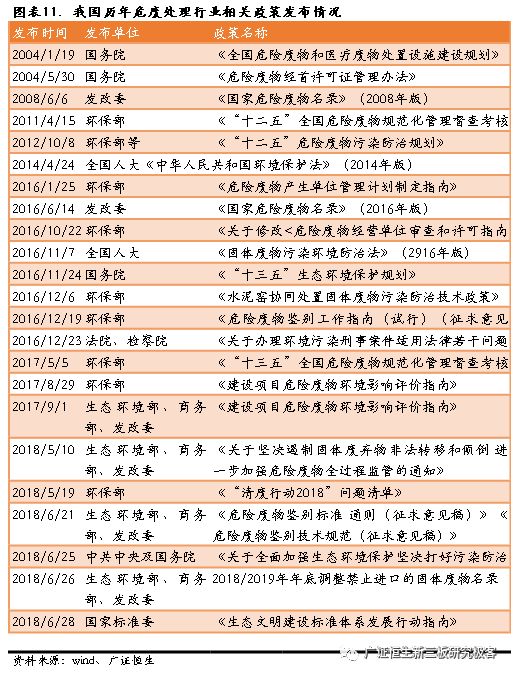 一是環(huán)保執(zhí)法力度加嚴(yán)。立法層面:根據(jù)2016年12月“兩高”出臺(tái)的關(guān)于《關(guān)于辦理環(huán)境污染刑事案件適用法律若干問(wèn)題的解釋》,涉及入刑的條款,在認(rèn)定為“嚴(yán)重污染環(huán)境”的18個(gè)行為中,9條與危廢直接相關(guān)。執(zhí)法層面:2016年開始的中央環(huán)保督查,處理環(huán)保案件近十萬(wàn)起,立案處罰2.69萬(wàn)起,問(wèn)責(zé)1.7萬(wàn)人,罰款12.64億元。2018年長(zhǎng)江經(jīng)濟(jì)帶開始的“清廢2018”行動(dòng),有望在2019-2020年推廣至全國(guó)。