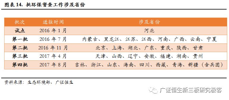 2015 年 7 月中央印發(fā)《環(huán)境保護(hù)督察方案(試行)》,把環(huán)境保護(hù)督察作為推動(dòng)生態(tài)文明建設(shè)的重要抓手。從 2016 年開始,在河北省開展試點(diǎn)的基礎(chǔ)上,中央分 4 批對(duì)各省市黨委、政府開展環(huán)保督察工作,實(shí)現(xiàn)了全覆蓋。