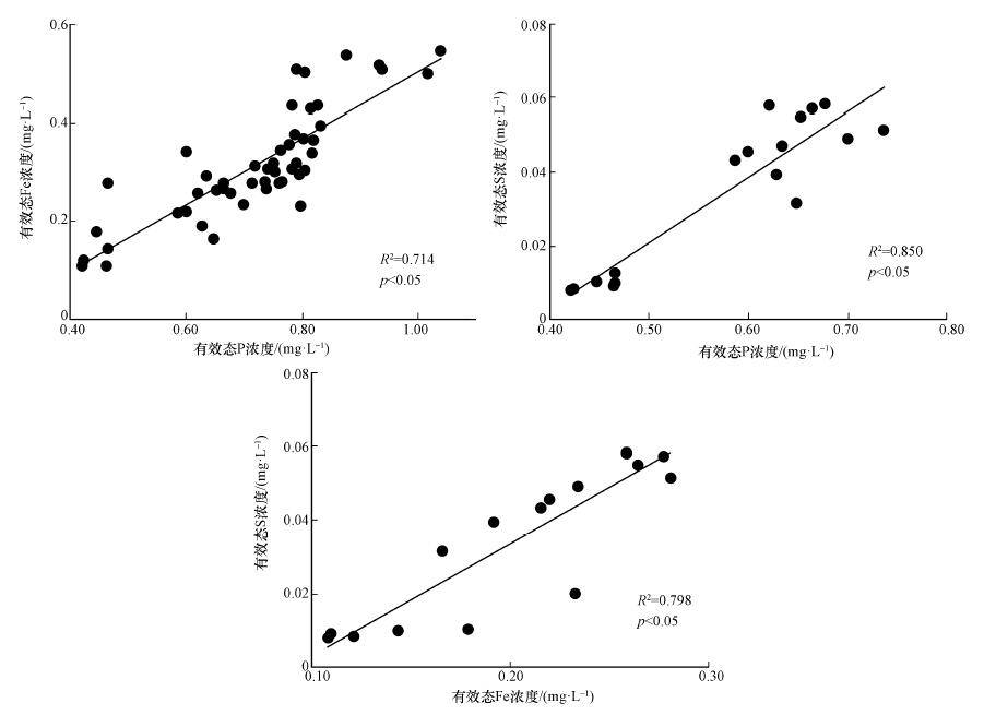 3.3 沉積物有效態(tài)P、Fe、S的耦合關(guān)系分析