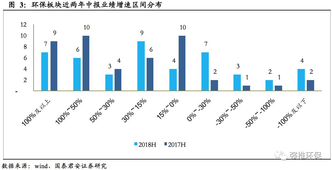 摘要:環(huán)保板塊半年報預(yù)告增速為-9.7%-9.9%,剔除異常公司后增速為7.6%-29.1%,回落明顯。環(huán)保板塊共有45家上市公司披露業(yè)績預(yù)告,板塊增速在-9.7%-9.9%之間,相對于上年同期環(huán)保板塊整體49.4%的凈利潤增速下滑明顯;剔除掉神霧環(huán)保、神霧節(jié)能、盛運(yùn)環(huán)保等經(jīng)營異常公司后,環(huán)保板塊披露業(yè)績預(yù)告的凈利潤增速區(qū)間在7.6%~29.1%之間,仍較這些可比樣本公司上年同期36.7%的凈利潤增速有所下滑。