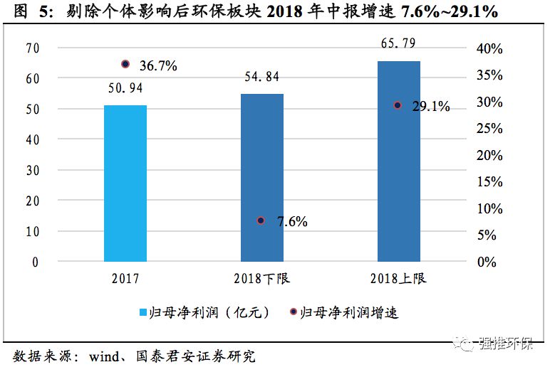 從公司層面來看,環(huán)保板塊2018年中報增速大幅下滑,主要是受神霧環(huán)保、神霧節(jié)能、盛運(yùn)環(huán)保等由于公司個體經(jīng)營影響的拖累,將這些公司剔除后,環(huán)保板塊2018年上半年凈利潤的區(qū)間合計在54.84 ~65.79之間,同比增長7.6%~29.1%,雖然較上年同期的36.7%增速有所下滑,但仍保持較為穩(wěn)定的增長態(tài)勢。