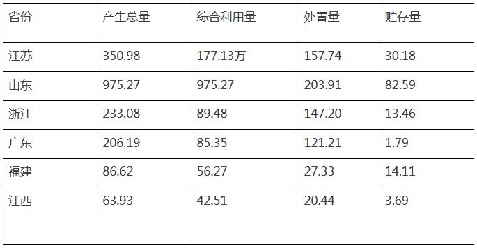 2016年福建省內(nèi)各地市產(chǎn)廢情況(萬噸)