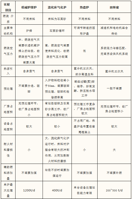 2.2.3 垃圾氣化工藝比較