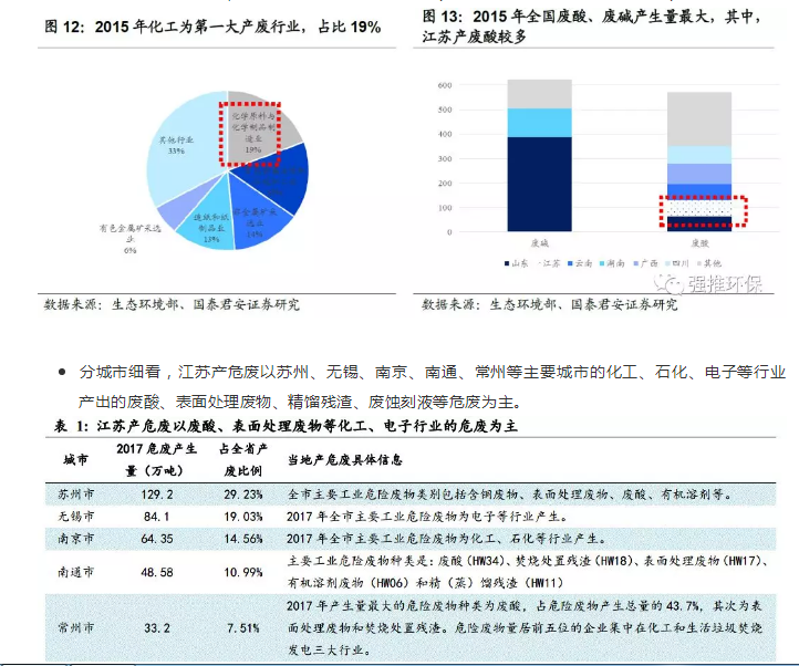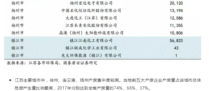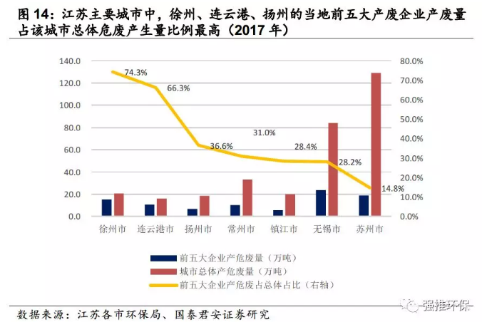 2.江蘇危廢處置需求分析:產(chǎn)廢城市和產(chǎn)廢地區(qū)集中度高,化工、石化、電子是產(chǎn)廢大戶