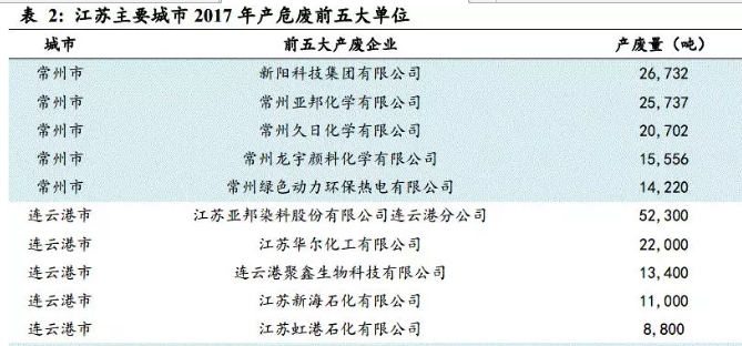 江蘇省產(chǎn)廢企業(yè)來源廣:以化工、石化、電子等危廢為主。