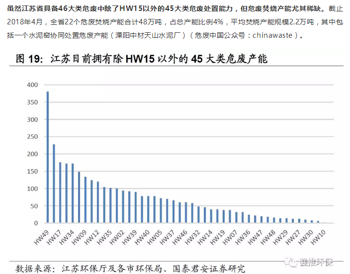 上述數(shù)據(jù)說明,江蘇省焚燒和填埋能力非常稀缺,而焚燒和填埋是處理難處理危廢的重要手段。