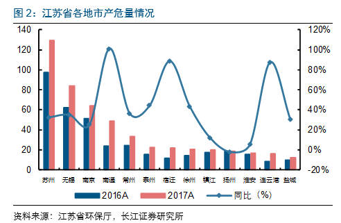 2017年江蘇省廢產(chǎn)量同比增37%至509萬噸