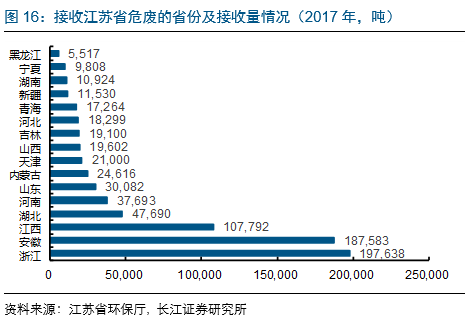 2017年跨省轉(zhuǎn)出危廢77萬噸,集中去浙江/安徽/江西