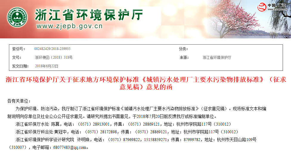 《浙江標(biāo)準(zhǔn)主要水污染物排放限值》(征求意見(jiàn)稿)