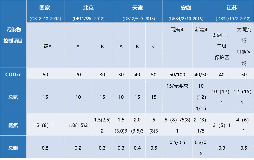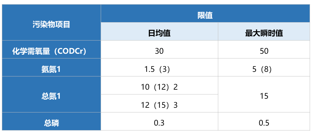 注:1:括號(hào)內(nèi)數(shù)值為每年11月至次年3月執(zhí)行;2:適用于新立項(xiàng)城鎮(zhèn)污水處理廠;3:適用于改(擴(kuò))建污水處理廠。