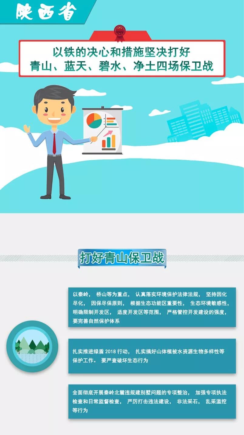 在首次以陜西省委、陜西省政府名義召開的全省生態(tài)環(huán)保大會上,陜西省提出下大力氣堅決打好青山保衛(wèi)戰(zhàn)、藍(lán)天保衛(wèi)戰(zhàn)、碧水保衛(wèi)戰(zhàn)、凈土保衛(wèi)戰(zhàn)四場戰(zhàn)斗,讓三秦大地天更藍(lán)、山更綠、水更清、環(huán)境更優(yōu)美。