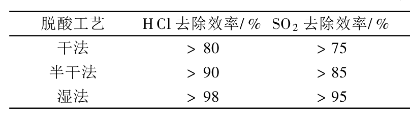 其中生活垃圾焚燒工程中有一個(gè)是必不可少的處理過(guò)程叫煙氣脫酸。何為垃圾焚燒煙氣脫酸呢?垃圾焚燒煙氣脫酸是指脫除垃圾焚燒產(chǎn)生的煙氣中所含的HCl、SO2、HF等酸性氣體,使最終對(duì)大氣環(huán)境排放的煙氣中的酸性氣體成分達(dá)到國(guó)家或地方允許的排放標(biāo)準(zhǔn)。一般而言,煙氣中酸性氣體的脫除有三類(lèi)基本處理工藝:干法、半干法與濕法。這三類(lèi)脫酸方式的效率如下圖1所示: