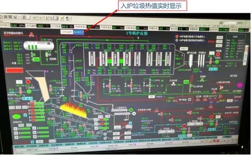 通過垃圾焚燒爐主蒸汽量實時累積以及垃圾焚燒爐入爐垃圾量的實時累積數(shù)據(jù),結(jié)合鍋爐熱平衡反向?qū)崟r計算垃圾入爐熱值,直接以數(shù)據(jù)反映在主控制界面上。