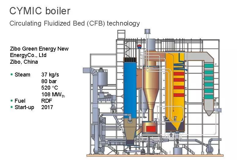 高參數(shù)的循環(huán)流化床焚燒爐具有蒸汽參數(shù)高,熱效率高,處理能力強,焚燒工藝的飛灰產(chǎn)量低,可實現(xiàn)全自動化運行,無人操作值守,焚燒線年運行時間超過8000h等技術(shù)特點。