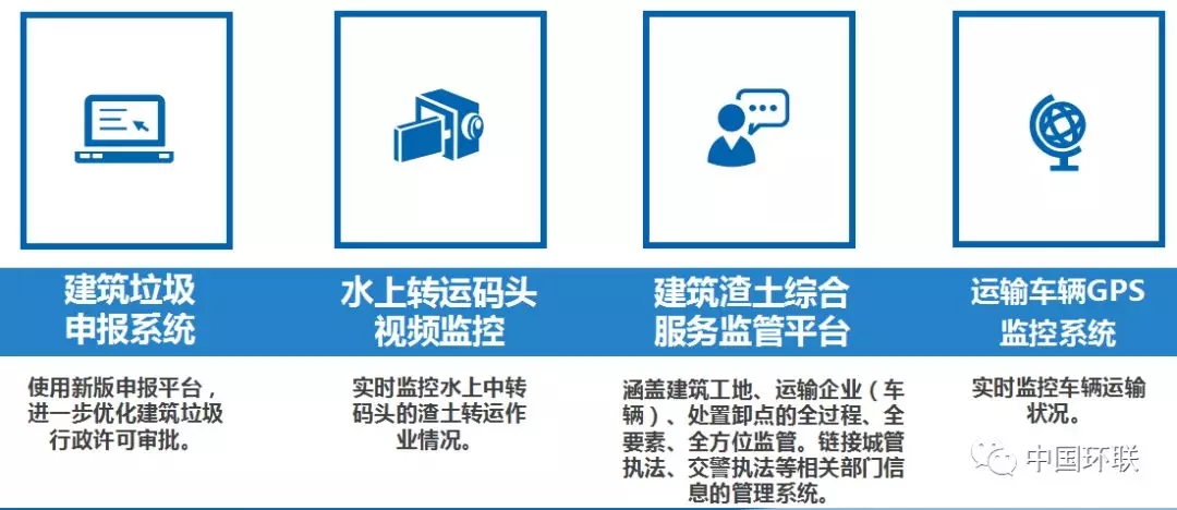 4、建立全方位信息化體系:進(jìn)一步梳理建筑垃圾申報平臺、GPS監(jiān)控平臺、碼頭視頻監(jiān)控系統(tǒng)、工地監(jiān)控視頻、計量稱重系統(tǒng)、微信舉報平臺和綜合服務(wù)監(jiān)管平臺等建筑垃圾管理信息化系統(tǒng),通過提升科技化手段加強日常管理。