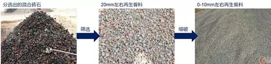 (1)分選出的混合磚石經(jīng)篩選、破碎后制成再生骨料,用以再生利用,如建材砌塊等;