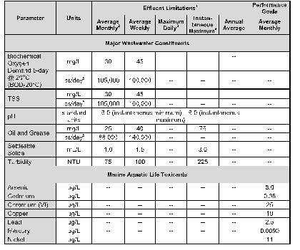 表1 美國加州Hyperion污水處理廠許可證里面的污染物限值信息(CA0109991)