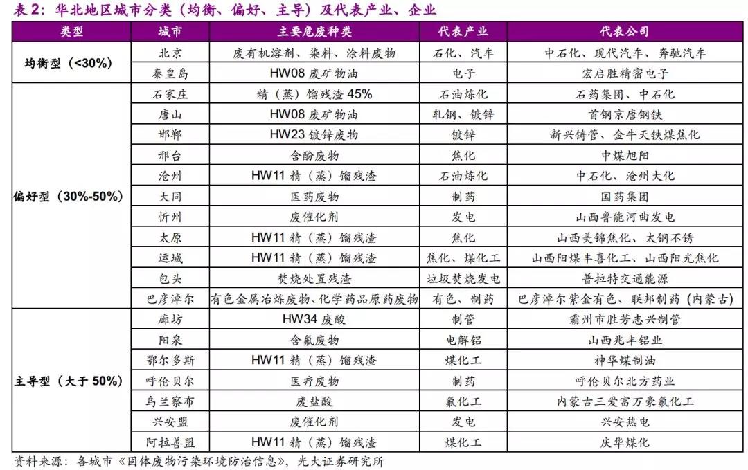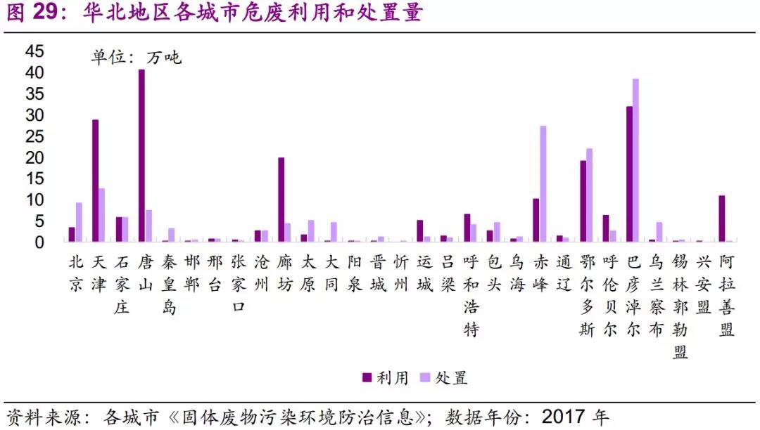 因此,我們建議關(guān)注華北地區(qū)黑色金屬冶煉及壓延加工業(yè)及電力、熱力的生產(chǎn)和供應(yīng)業(yè)所產(chǎn)生的危廢,如廢酸、廢催化劑等。
