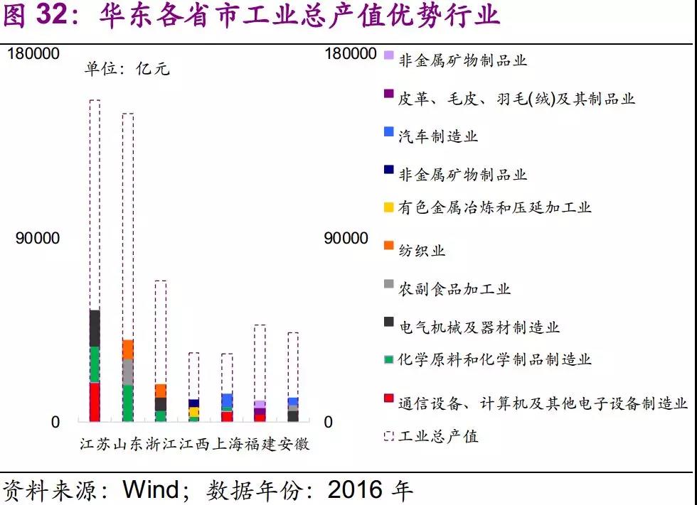 從全行業(yè)來看,江蘇、福建優(yōu)勢產(chǎn)業(yè)為通信設(shè)備、計算機(jī)及其他電子設(shè)備制造業(yè);浙江、安徽優(yōu)勢產(chǎn)業(yè)為電氣機(jī)械及器材制造業(yè);山東、江西、上海優(yōu)勢產(chǎn)業(yè)分別為化學(xué)原料和化學(xué)制品制造業(yè)、有色金屬冶煉和壓延加工業(yè)和汽車制造業(yè)。