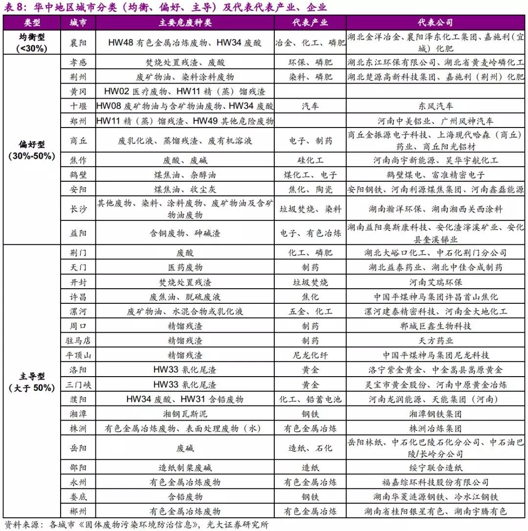 因此,我們認(rèn)為華中地區(qū)危廢種類較為復(fù)雜,建議關(guān)注有色金屬冶煉和壓延加工業(yè)及化學(xué)原料和化學(xué)制品制造業(yè)所產(chǎn)生的危廢,如有色金屬冶煉廢物、廢堿等。
