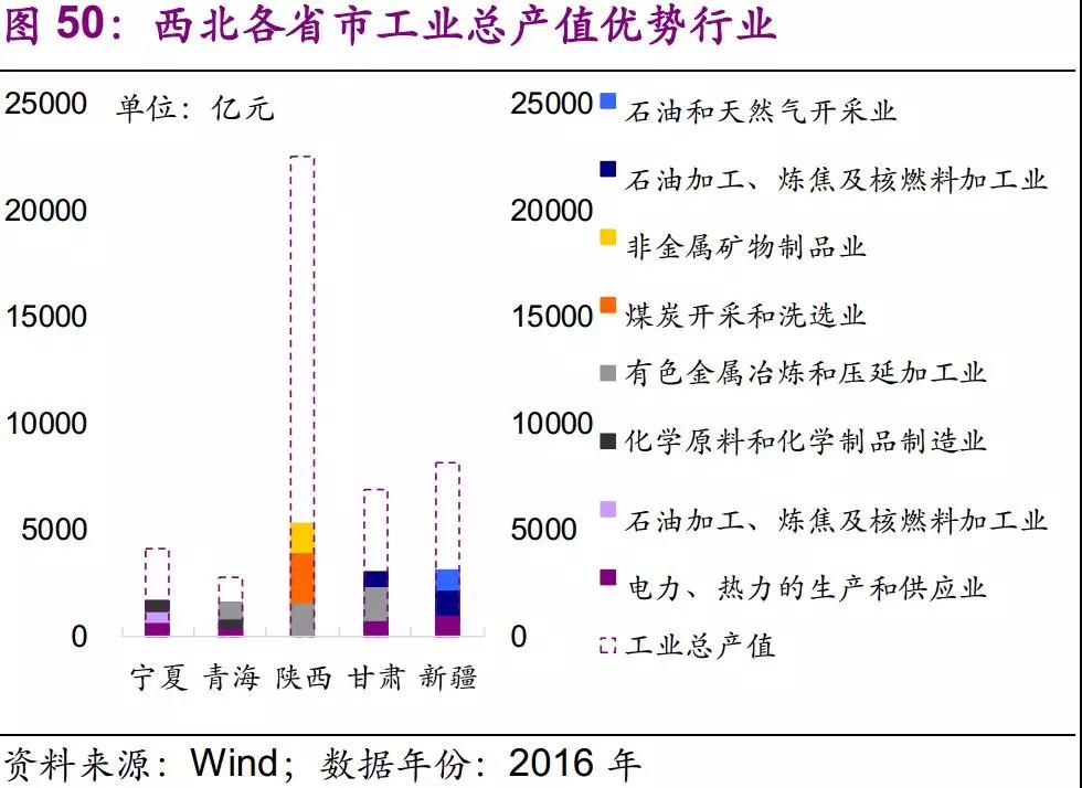 從全行業(yè)來看,寧夏、青海、陜西、甘肅、新疆的優(yōu)勢產(chǎn)業(yè)分別為電力、熱力的生產(chǎn)和供應(yīng)業(yè)、有色金屬冶煉和壓延加工業(yè)、煤炭開采和洗選業(yè)、有色金屬冶煉和壓延加工業(yè)和石油加工、煉焦及核燃料加工業(yè)。