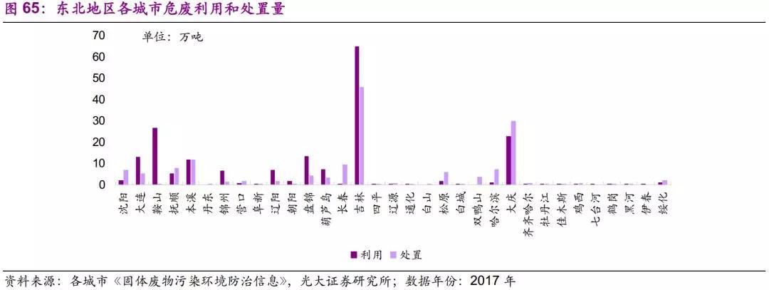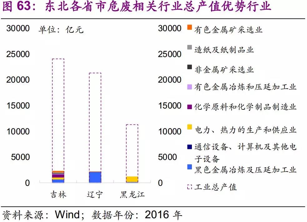 因此,我們認(rèn)為東北地區(qū)應(yīng)重點關(guān)注黑色金屬冶煉及壓延加工業(yè)和石油加工、煉焦及核燃料加工業(yè)所產(chǎn)生的危廢,如廢礦物油、蒸餾(精餾)殘渣等。