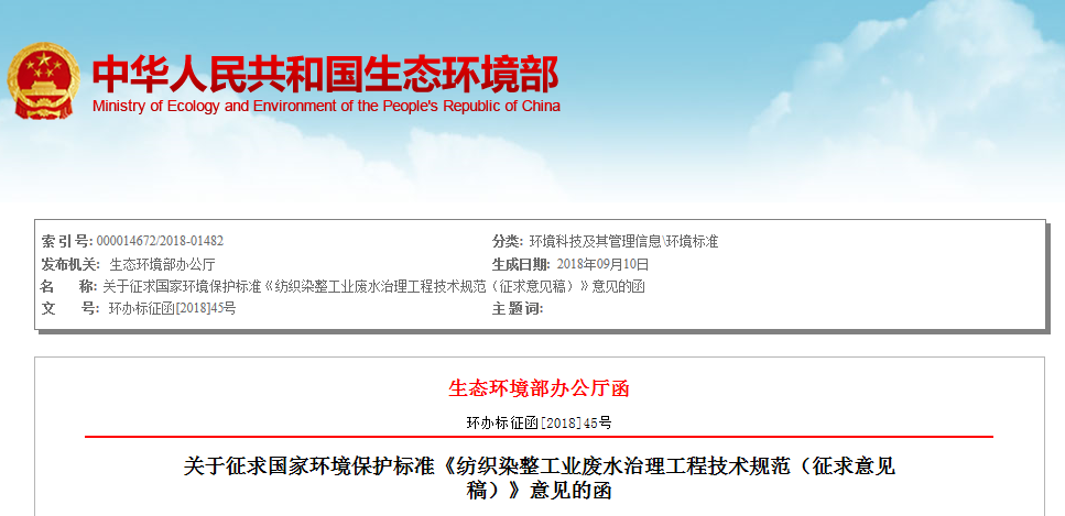 為貫徹《中華人民共和國環(huán)境保護(hù)法》和《中華人民共和國水污染防治法》等法律法規(guī),防治環(huán)境污染,改善環(huán)境質(zhì)量,規(guī)范紡織染整工業(yè)廢水治理工程設(shè)施的建設(shè)和運(yùn)行管理,我部決定制定《紡織染整工業(yè)廢水治理工程技術(shù)規(guī)范》。