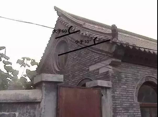 中國傳統(tǒng)建筑的屋頂,多用大坡度的設計,靠近屋脊的坡度超過60°,而靠近房檐的坡度小于30°,利用慣性使快速流下的雨水沖出屋檐外。