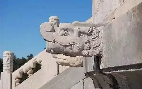 游覽古建的游客對上圖中這個構件想必會印象深刻。它叫做螭首,“螭”是傳說中的“龍生九子”之一,可以看做一種沒有角的龍,嘴大,肚子能容納很多水。