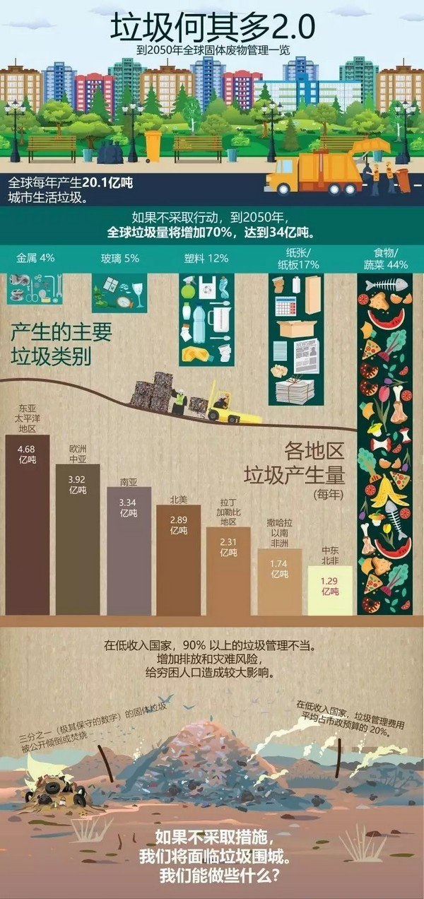 如不緊急行動(dòng)起來,到2050年全球垃圾量將在目前水平上增加70%,世界銀行新報(bào)告《垃圾何其多2.0:到2050年全球固體廢物管理一覽》報(bào)告如是說。