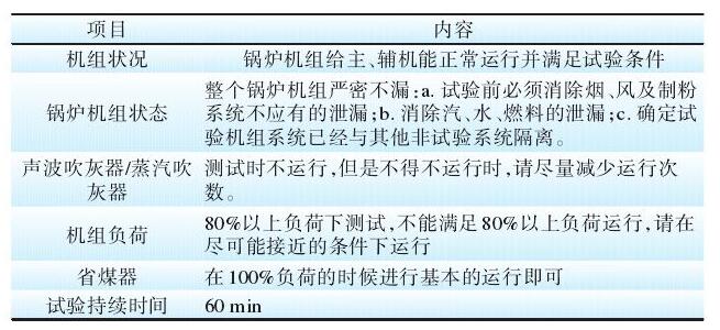 為了滿足測試的要求使測試結(jié)果準確對電廠的運行條件有一定的要求,如表1所示